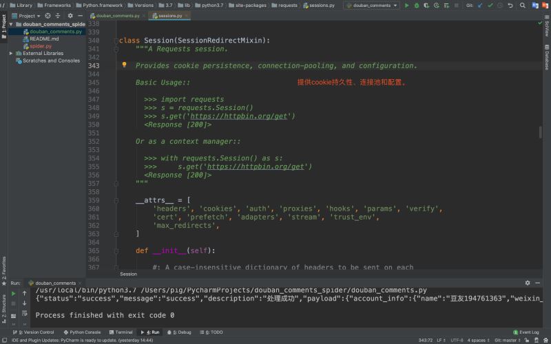 我們可以看到發(fā)起請(qǐng)求的對(duì)象變成了session對(duì)象,它和原來(lái)的requests對(duì)象發(fā)起請(qǐng)求方式一樣,只不過(guò)它每次請(qǐng)求會(huì)自動(dòng)帶上Cookie,所以后面我們都用Session對(duì)象來(lái)發(fā)起請(qǐng)求!