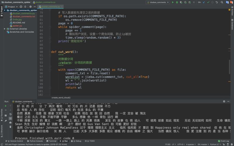 數(shù)據(jù)抓取下來(lái)之后,我們就來(lái)使用詞云分析一下這部電影吧!