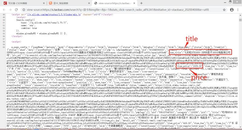 當(dāng)請求得到HTML頁面后,想要得到我們想要的數(shù)據(jù)就必須得對其進(jìn)行提取,這里我選擇了正則的方式。通過查看頁面源碼: