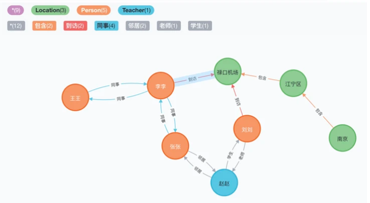 - Person和Person節(jié)點(diǎn)之間有同事、鄰居、學(xué)生、老師等關(guān)系;