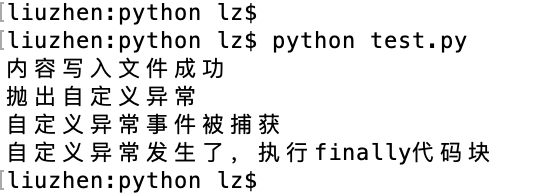 print "自定義異常發(fā)生了,執(zhí)行finally代碼塊"