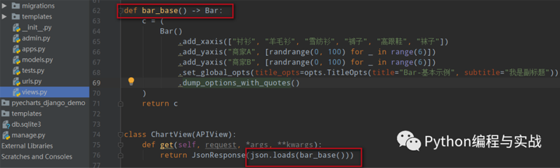 3. 編寫 Django 和 pyecharts 代碼渲染圖表