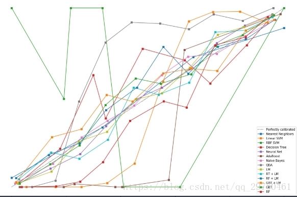 ax1.plot([0, 1], [0, 1], "k:", label="Perfectly calibrated")