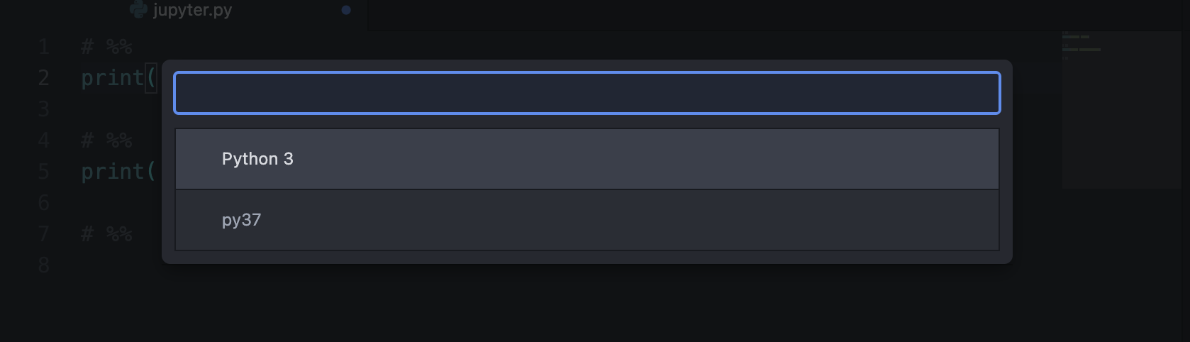 然后再第2行末尾按ctrl+enter就會(huì)自動(dòng)彈出來(lái)讓你選擇環(huán)境的彈窗,選擇剛剛新建的環(huán)境即可