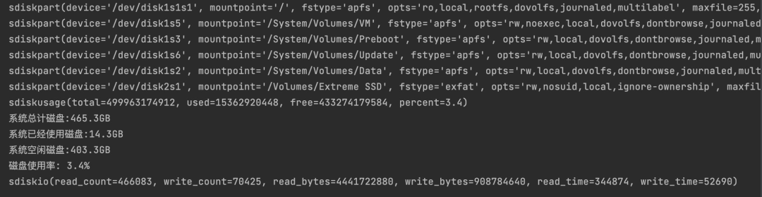 這里以本機(jī)磁盤(pán)mountpoint='/'為例,查看磁盤(pán)的使用情況(總?cè)萘?,已使用,空閑容量,使用率)