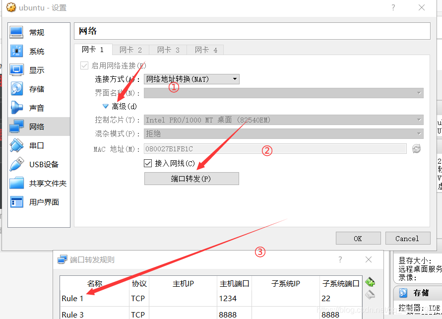 3.配置ubuntu的端口轉(zhuǎn)發(fā)(添加端口號為1234的端口):