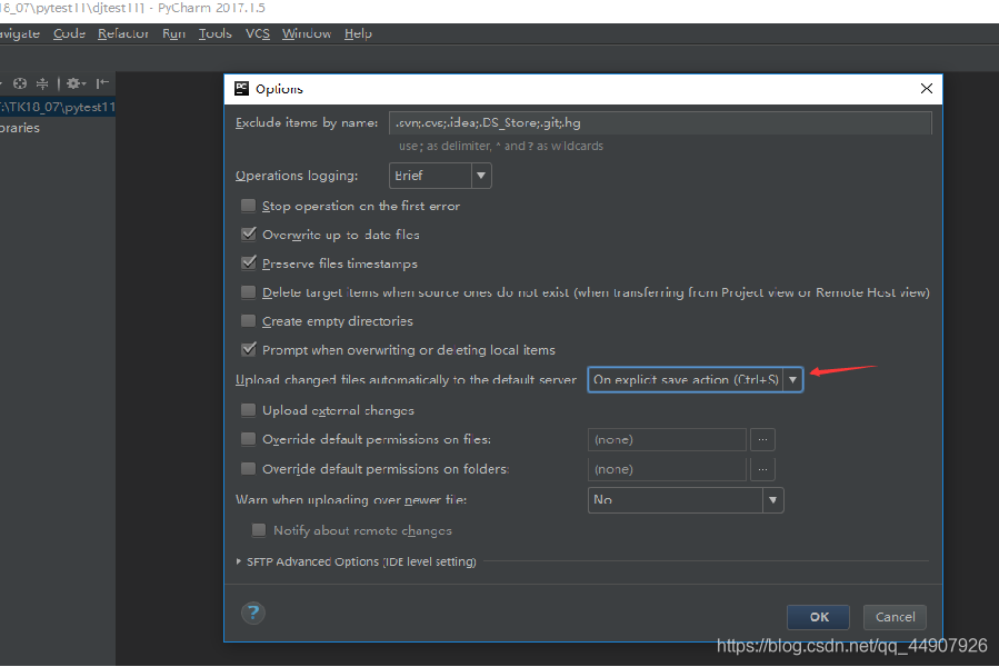 第二步:對新建的Django項(xiàng)目進(jìn)行一些基礎(chǔ)的配置?。?! (1)更改上傳方式為ctrl+s保存上傳方式: