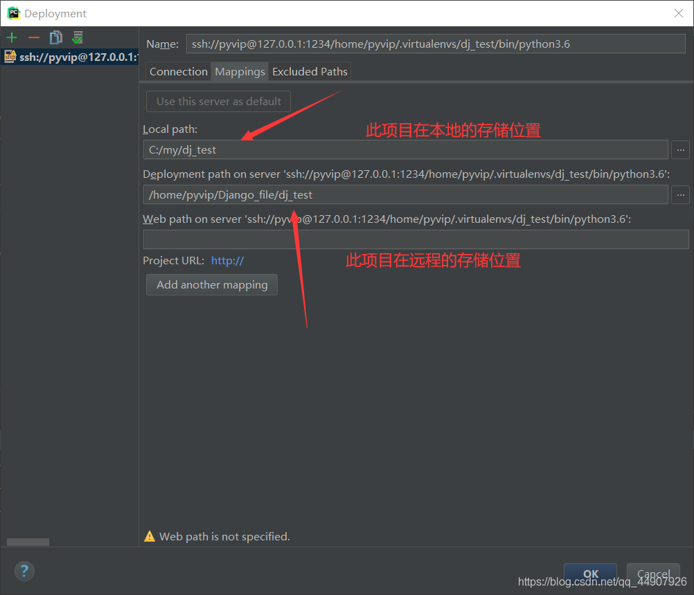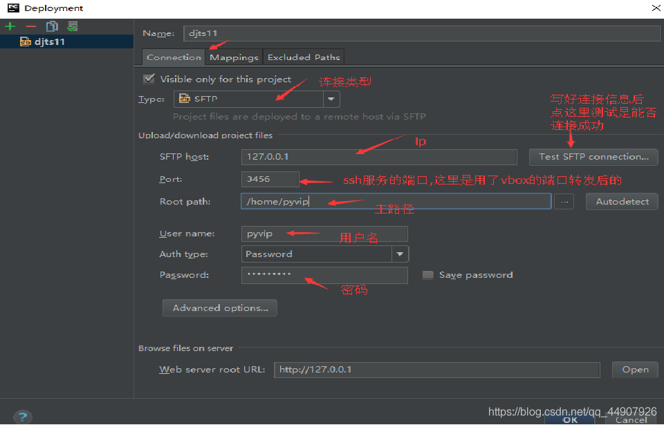 注意這里的遠(yuǎn)程項(xiàng)目存儲路徑是和前面connection中的root path進(jìn)行拼接的