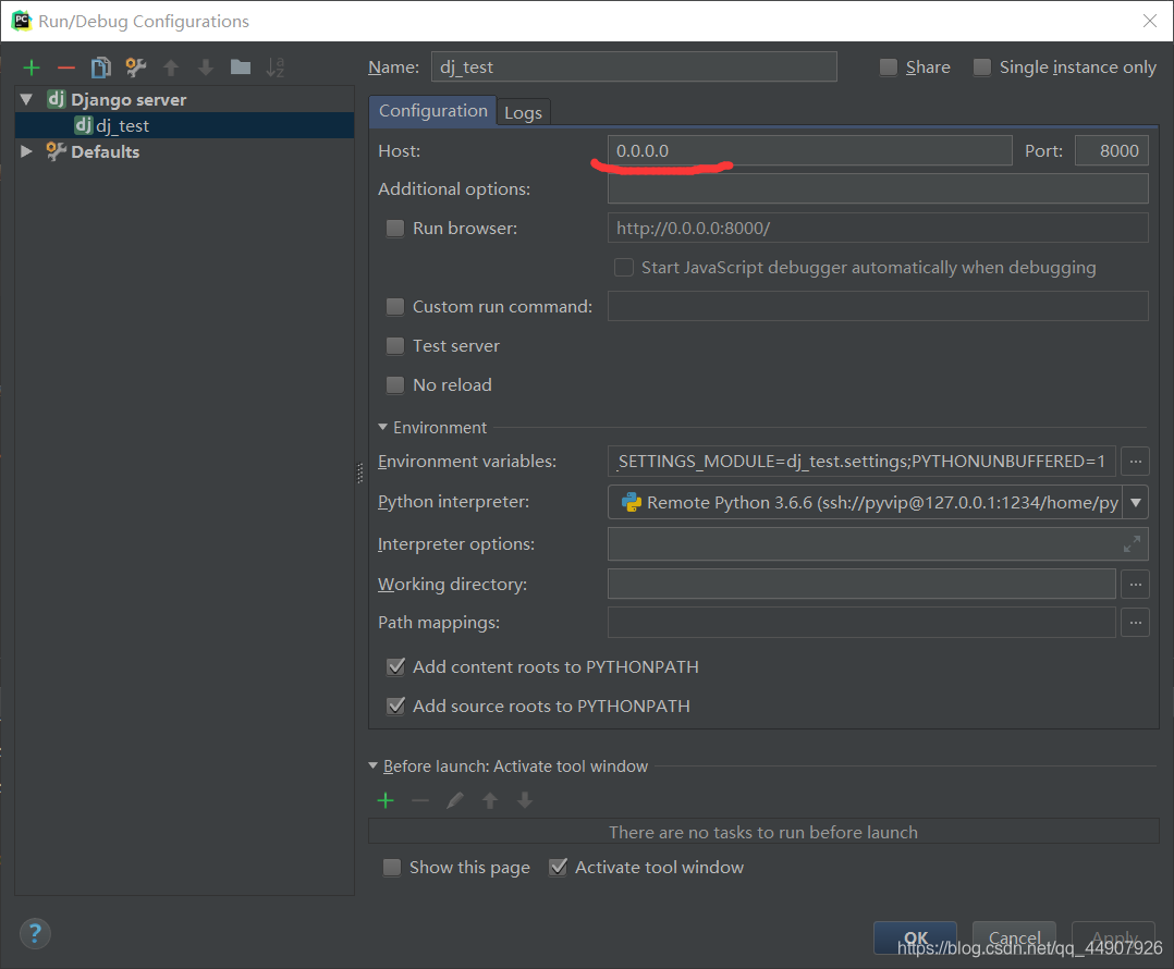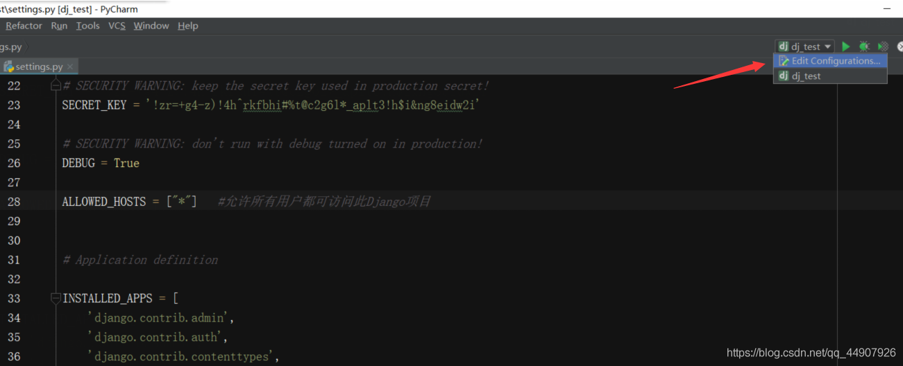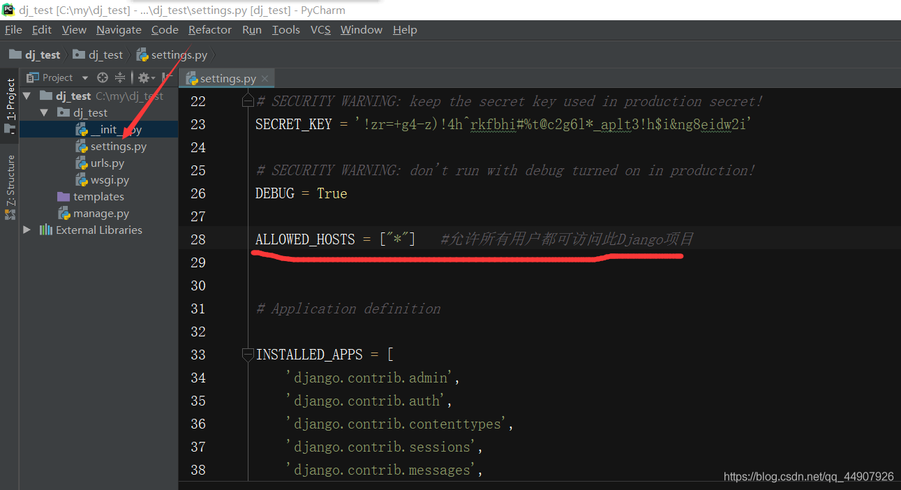 (3)設(shè)置何人可訪問此Django項(xiàng)目(兩步走?。?/p>