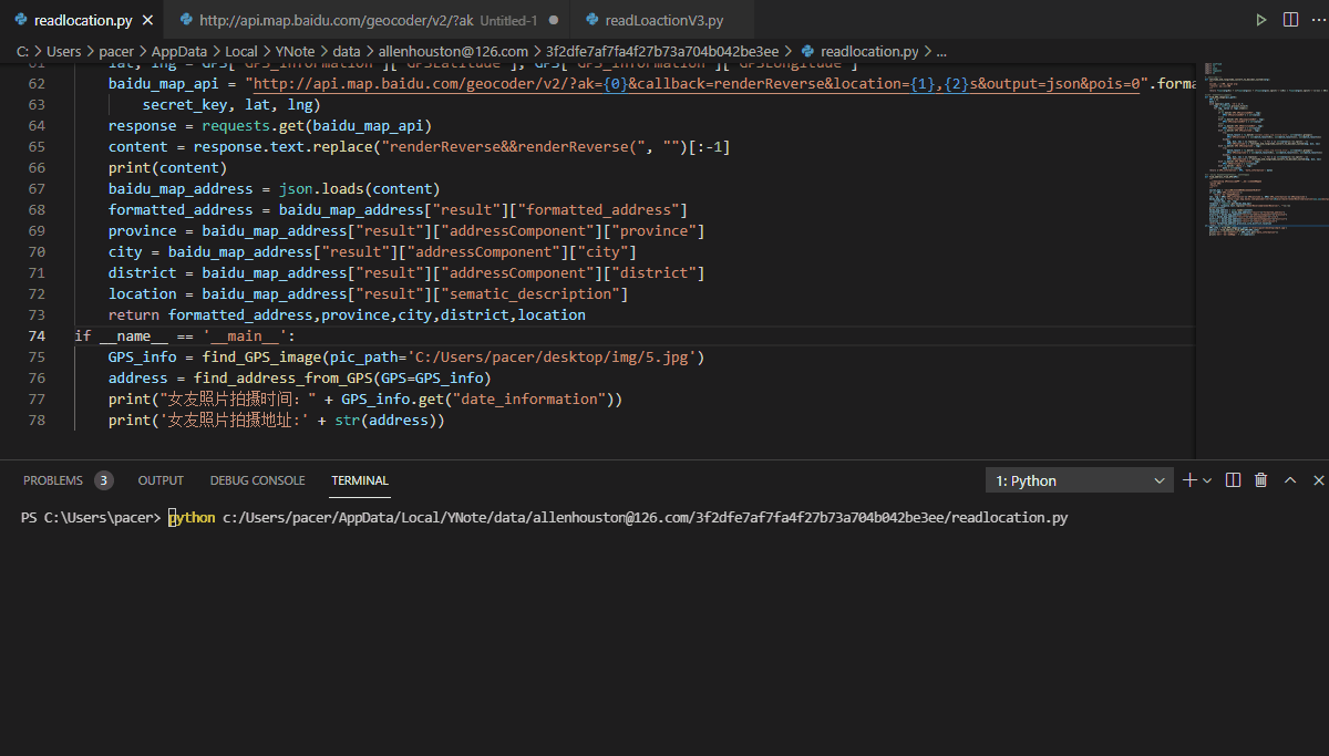 下面是通過(guò)exifread模塊,來(lái)讀取照片內(nèi)的經(jīng)緯度信息。