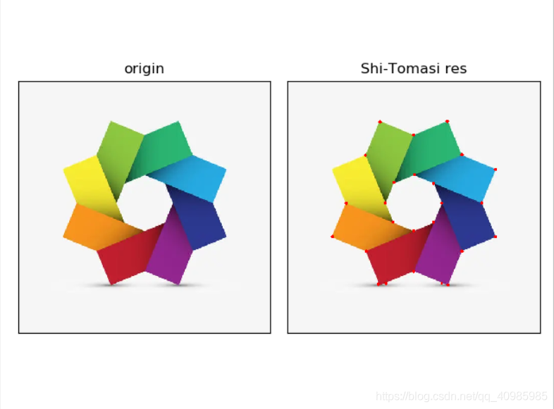 原圖 VS Shi-Tomasi角點(diǎn)檢測(cè)效果圖如下: