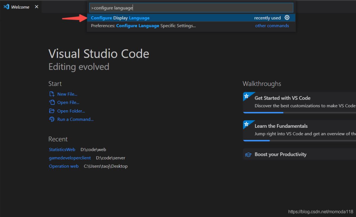 4)在搜索框輸入【configure language】,然后點(diǎn)擊搜索出來(lái)的【Configure Display Language】