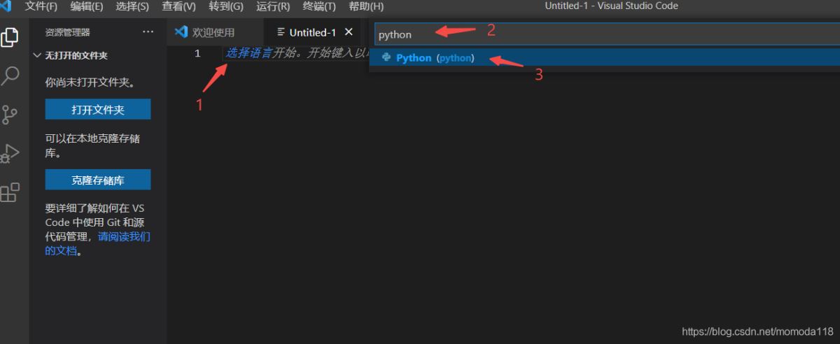 3.1 按【Ctrl+N】新建一個(gè)文件輸入【python】并選擇對(duì)應(yīng)python語(yǔ)言