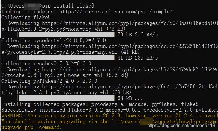 1)打開命令行,輸入pip install flake8進(jìn)行安裝