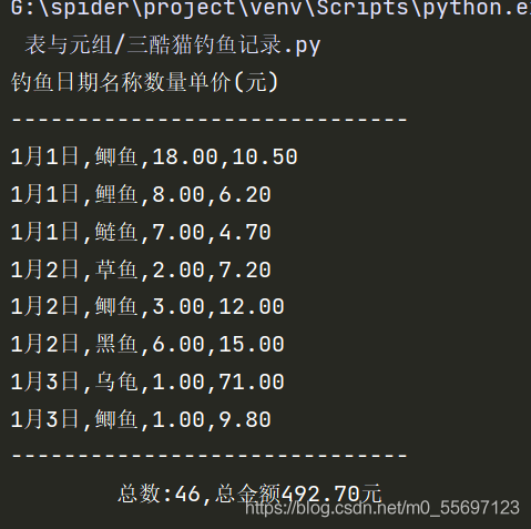 amount = amount + fish_record[i+2]*fish_record[i+3]#累計(jì)金額