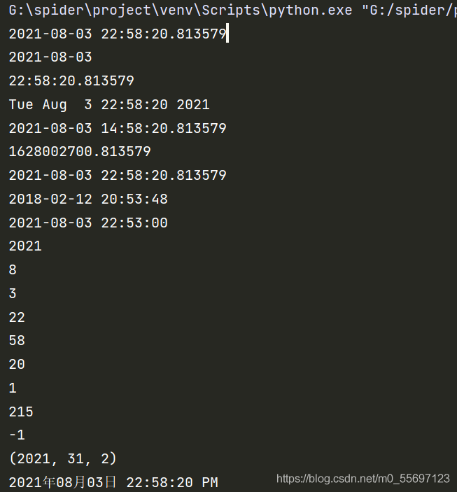 print(datetime.date(today)) #返回當(dāng)天的日期對(duì)象,date類型