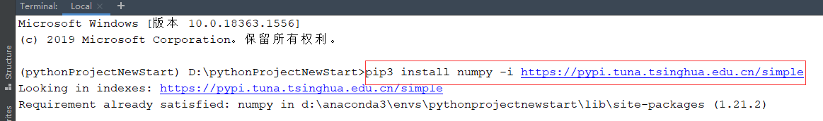 同時由于引入了cv2,numpy等第三方庫,因此需要在pycharm的終端Terminal中下載一系列的第三方庫到虛擬環(huán)境的路徑中: