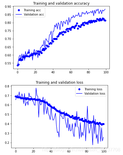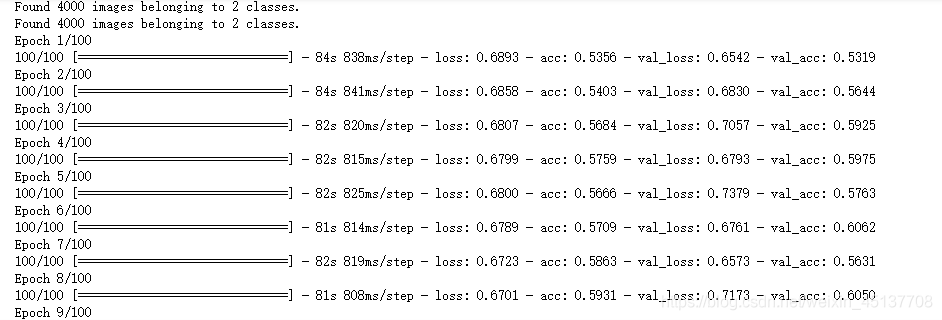 from keras import optimizers model.compile(loss='binary_crossentropy', optimizer=optimizers.RMSprop(lr=1e-4), metrics=['acc'])