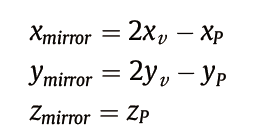 其中(xmirror,ymirror,zmirror)是所求鏡像點的三維坐標。