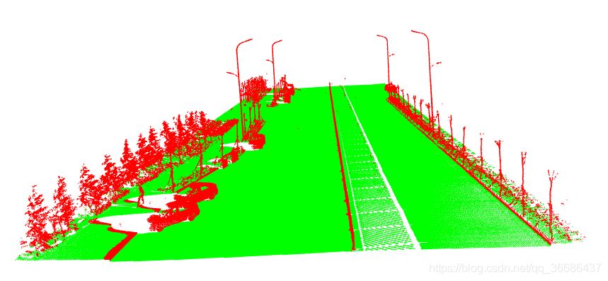 這里的網(wǎng)格分辨率和距離閾值最小只能設(shè)置為10cm,地面10cm的范圍默認(rèn)是地面點(diǎn),精確度不如自己代碼實(shí)現(xiàn)中的高。