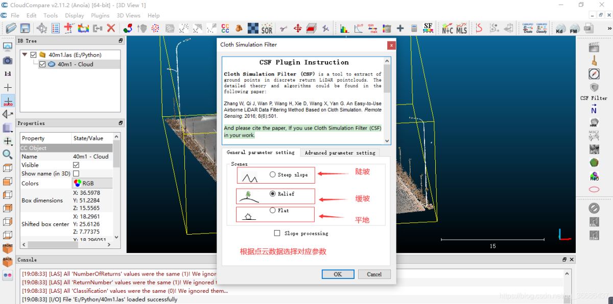 1、加載點(diǎn)云數(shù)據(jù),點(diǎn)擊Plugins中的CSF Filter功能