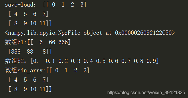 - load()自動識別npz文件,并且返回一個類似于字典的對象,可以通過數(shù)組名作為鍵獲取數(shù)組的內(nèi)容