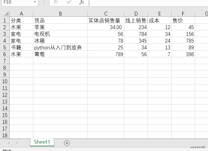 分類貨品 實(shí)體店銷售量 線上銷售量 成本 售價(jià)