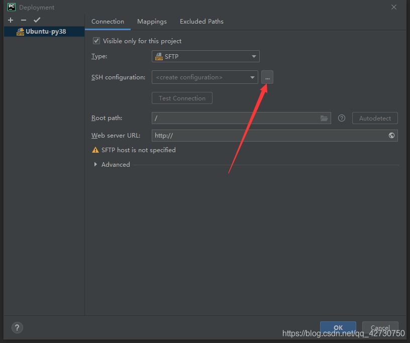 我的web server的名字是Ubuntu-py38,然后按下面的圖示進(jìn)行配置SSH: