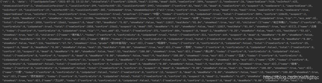url = 'https://view.inews.qq.com/g2/getOnsInfo?name=disease_h5' req = requests.get(url=url) content = json.loads(req.text)