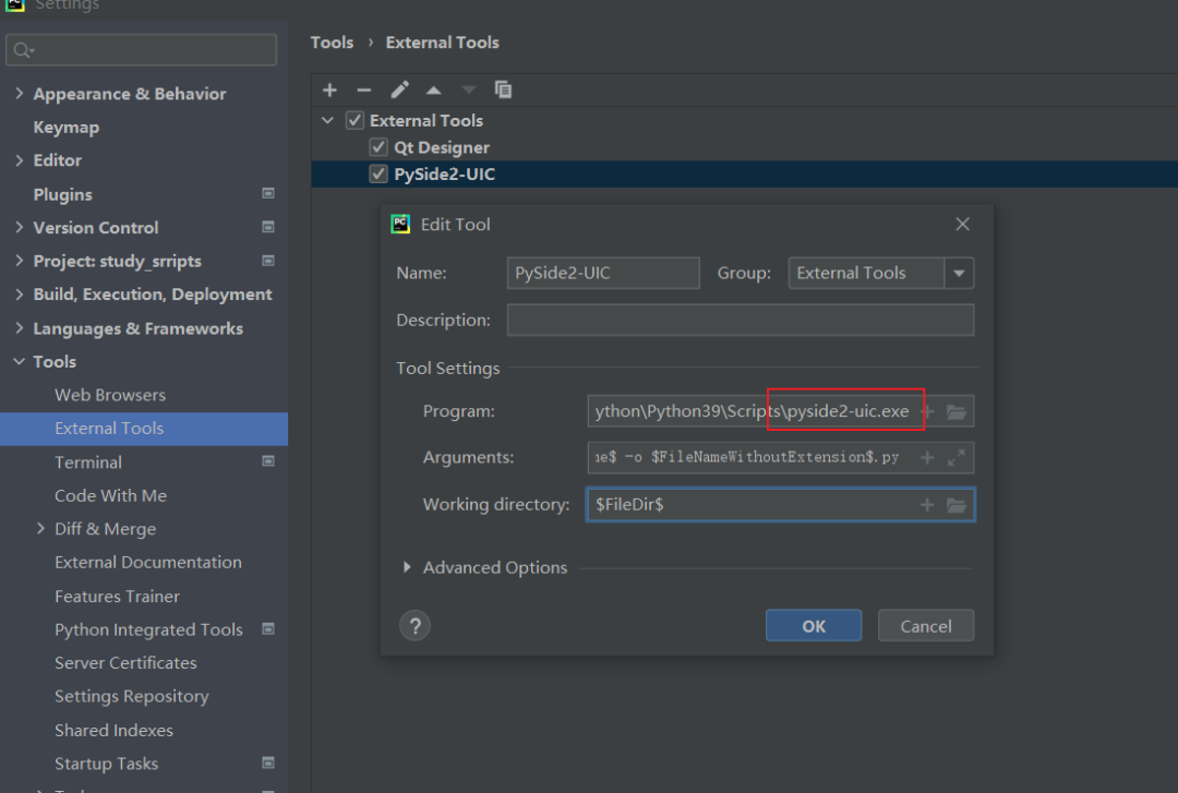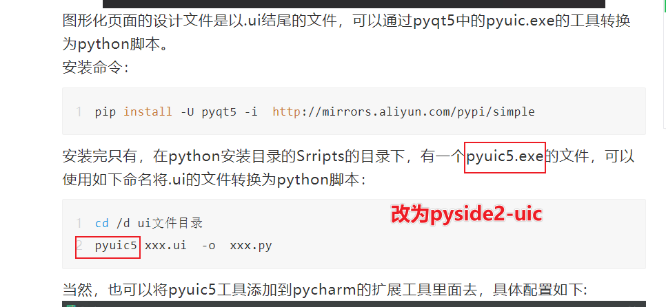 上一章節(jié)介紹了PySide2的安裝以及如何去啟動(dòng)程序進(jìn)行頁(yè)面設(shè)計(jì),并且將工具集成到pycharm的擴(kuò)展工具中去,有2個(gè)地方寫(xiě)的不對(duì),用的是pyuic工具,需要改一下,改成pyside2-uic.exe。具體改動(dòng)點(diǎn):