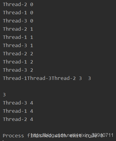 import threading import time class MyThread(threading.Thread): def run(self): for i in range(5): time.sleep(1) print(self.name,i) t1 = MyThread() t2 = MyThread() t3 = MyThread() t1.start() t2.start() t3.start()