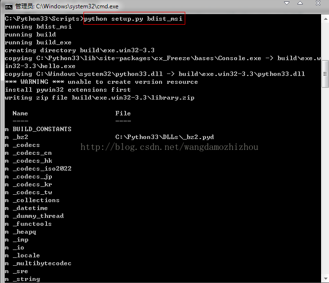 執(zhí)行成功之后,將在”C:\Python33\Scripts“目錄下生成build和dist兩個文件。