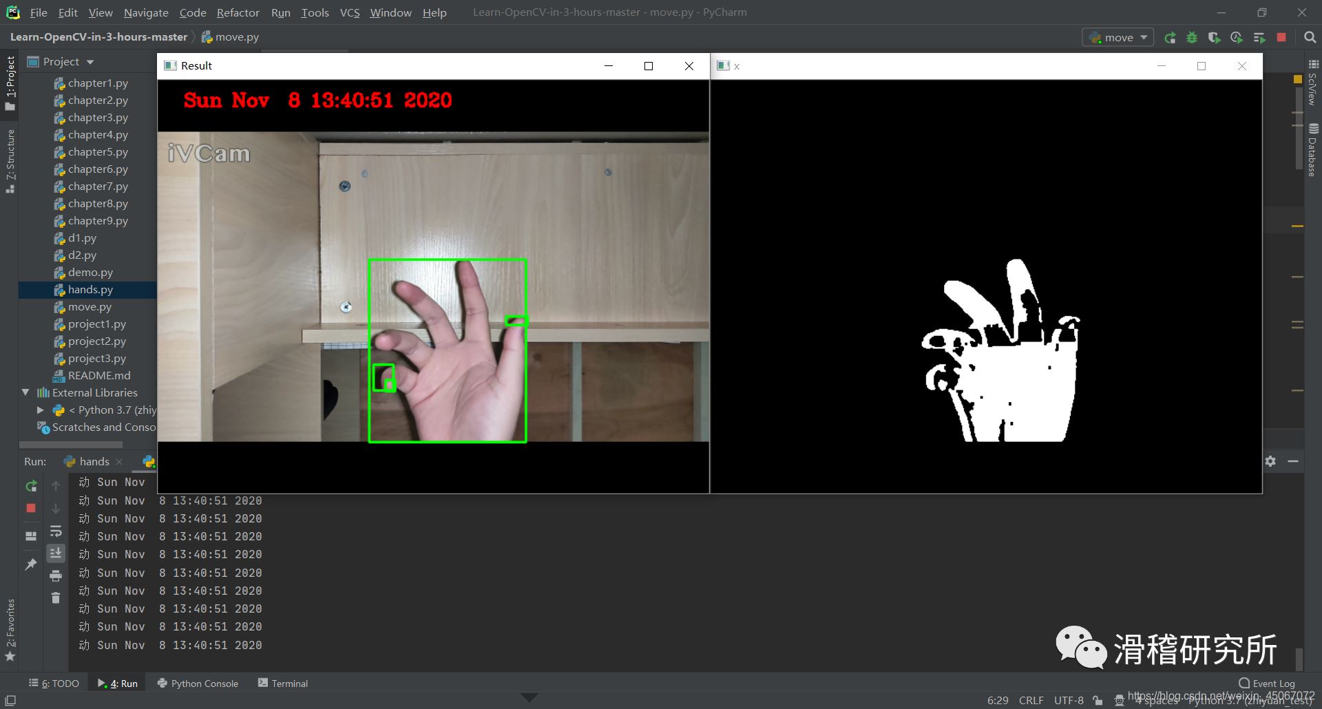 我采用的檢測動態(tài)物體的方法是,比較前后兩幀圖像,即當前畫面與上一幀的畫面出現了不同。我們把兩幀畫面進行比較。然后框選出運動的物體。我們還希望程序可以判斷當前窗口到底有沒有物體在運動。那么我們就需要添加一個狀態(tài)。為了方便我們找到什么時間有物體移動,我打印出時間。