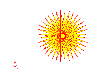 - 畫筆顏色:color('red', 'yellow'), 第一個red表示畫筆顏色, yellow表示填充顏色