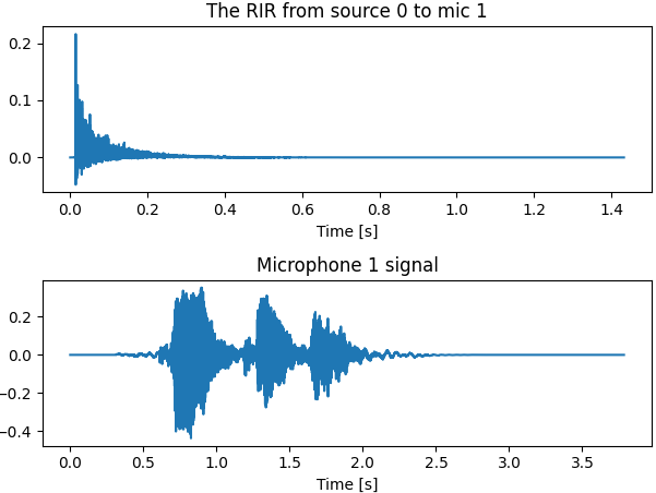 # 5、模擬聲音傳播,每個源的信號將與相應的房間脈沖響應進行卷積。卷積的輸出將在麥克風上求和。
