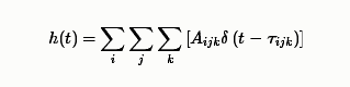 其中$c$為聲速,$r$為聲源到麥克風的直線距離。那么,混響效果等效為不同延遲的信號的疊加,即混響效果可以表示為一個FIR濾波器與信號源卷積的形式,此濾波器可寫為如下形式