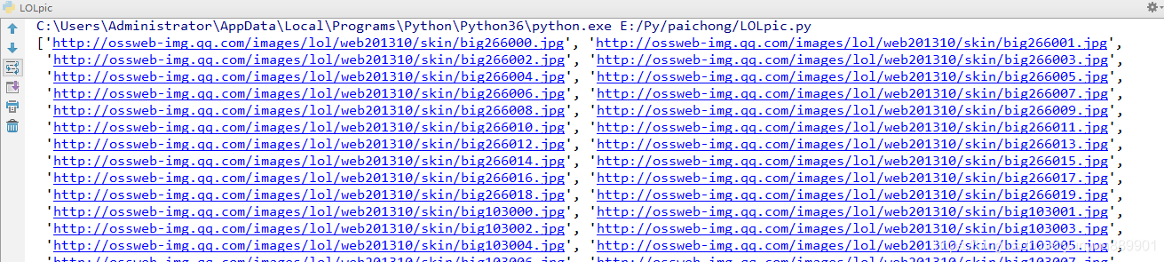 運行后會在控制臺打印出每一張圖片的網(wǎng)址: