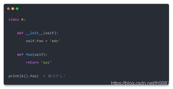 這段代碼,我們定義了一個(gè)相同名字的屬性和方法foo,如果現(xiàn)在執(zhí)行A().foo,你覺(jué)得會(huì)輸出什么結(jié)果?