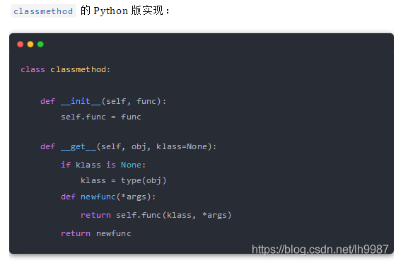 看到了嗎?A的foo方法其實(shí)實(shí)現(xiàn)了__get__,我們?cè)谏厦娴姆治鲆呀?jīng)得知:只定義__get__方法的對(duì)象,它其實(shí)是一個(gè)非數(shù)據(jù)描述符,也就是說(shuō),我們?cè)陬?lèi)中定義的方法,其實(shí)本身就是一個(gè)非數(shù)據(jù)描述符。