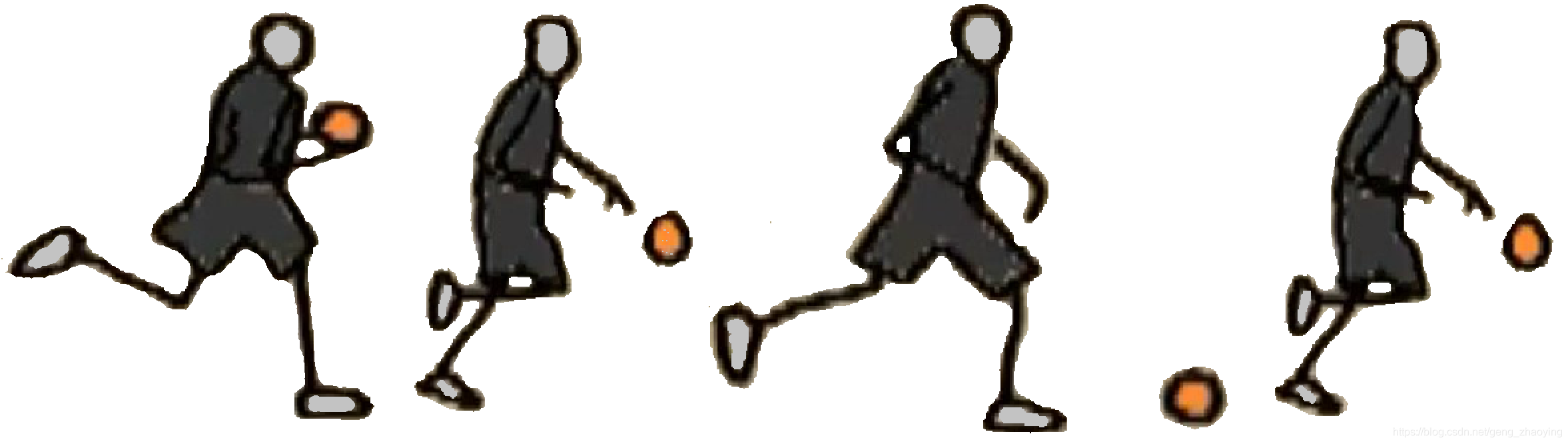 準備編寫一個籃球游戲,運動員帶球跑,跳起投籃。在每幀圖片中包括運動員和籃球,使用多幀圖片,實現(xiàn)運動員運球跑動的效果。運動員運球跑動作每幀圖形的寬和高可能不同,例如,跨一大步,和兩腿并攏,其寬和高不可能相同。如果不考慮兩個角色的碰撞,所有幀圖形的寬和高取最大值,使所有幀寬和高相同,可采用將所有幀圖形放到一個大圖形中,實現(xiàn)動畫,見博文“pygame.surface.blit()方法4個參數(shù)的使用方法”。pygame中兩個角色碰撞,實際上是圖形外矩形框的碰撞,即兩個矩形框重合,表示兩個角色發(fā)生碰撞。為了逼真,每個矩形框要盡量靠近內(nèi)部圖形。因此無法保證每幀圖形的寬和高都相同。在這種情況下,必須把每幀圖形用列表保存。