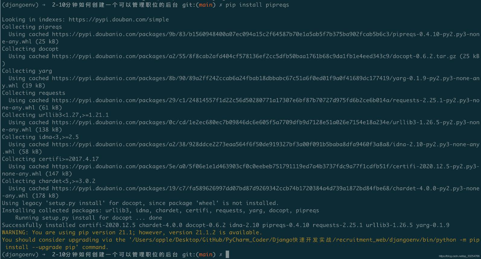 我們可以用上面的“requirements.txt”文件來導(dǎo)入依賴包,快速構(gòu)建好環(huán)境。特別是我們需要把項目遷移到其它環(huán)境進(jìn)行部署,此時就非常方便了。