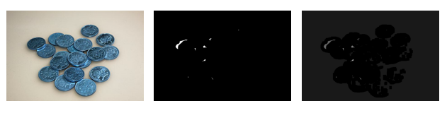 當(dāng)然,參數(shù)可以調(diào)整,可以看到大致的硬幣被完整的分割出來了。