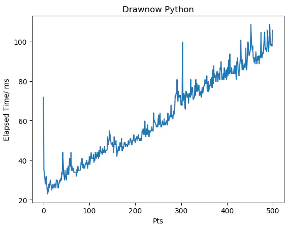 很顯然每步繪圖時(shí)間與繪圖點(diǎn)數(shù)呈線性相關(guān)的趨勢(shì),且隨著點(diǎn)數(shù)增加,時(shí)間消耗越多??梢韵胂?,當(dāng)繪圖的點(diǎn)數(shù)到達(dá)上萬(wàn)乃至億的時(shí)候,那電腦就卡住了。