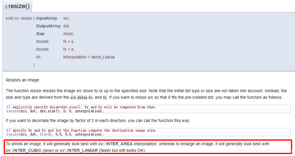 OpenCV官方說(shuō)明:注意紅色方框那句話:https://docs.opencv.org/3.2.0/da/d54/group__imgproc__transform.html#ga47a974309e9102f5f08231edc7e7529d
