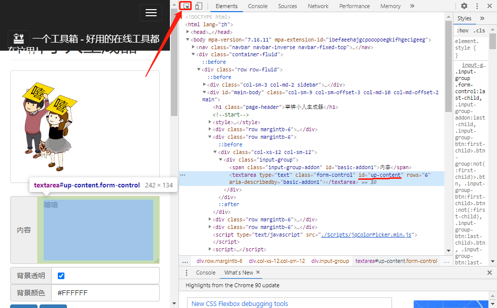 點(diǎn)擊F12,打開開發(fā)者工具,我們先來定位“輸入框”,可以看到這里的id屬性是up-content。