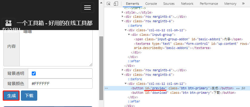 再來定位“生成”這二字的節(jié)點(diǎn),可以看到這里的id屬性是preview。
