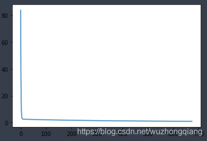 上面的代碼中,我沒有進行手動清零,迭代1000次, 把每一次的loss放到來result中, 然后畫出圖像,感受一下結(jié)果: