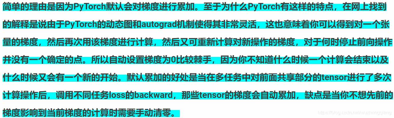 # 由于pytorch反向傳播中,梯度是累加的,所以如果不想先前的梯度影響當(dāng)前梯度的計算,需要手動清0