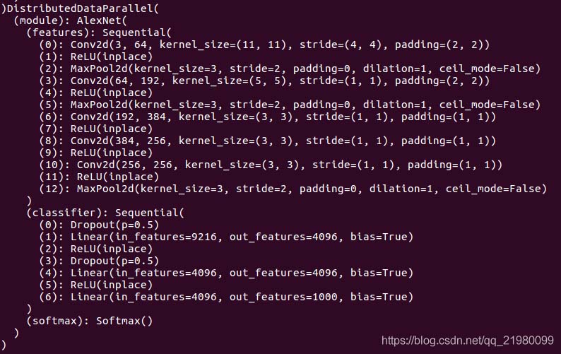 在pdb debug界面輸入p model.module.features[0].weight,就可以看到weight,輸入 p model.module.features[0].weight.grad 就可以查看梯度信息。