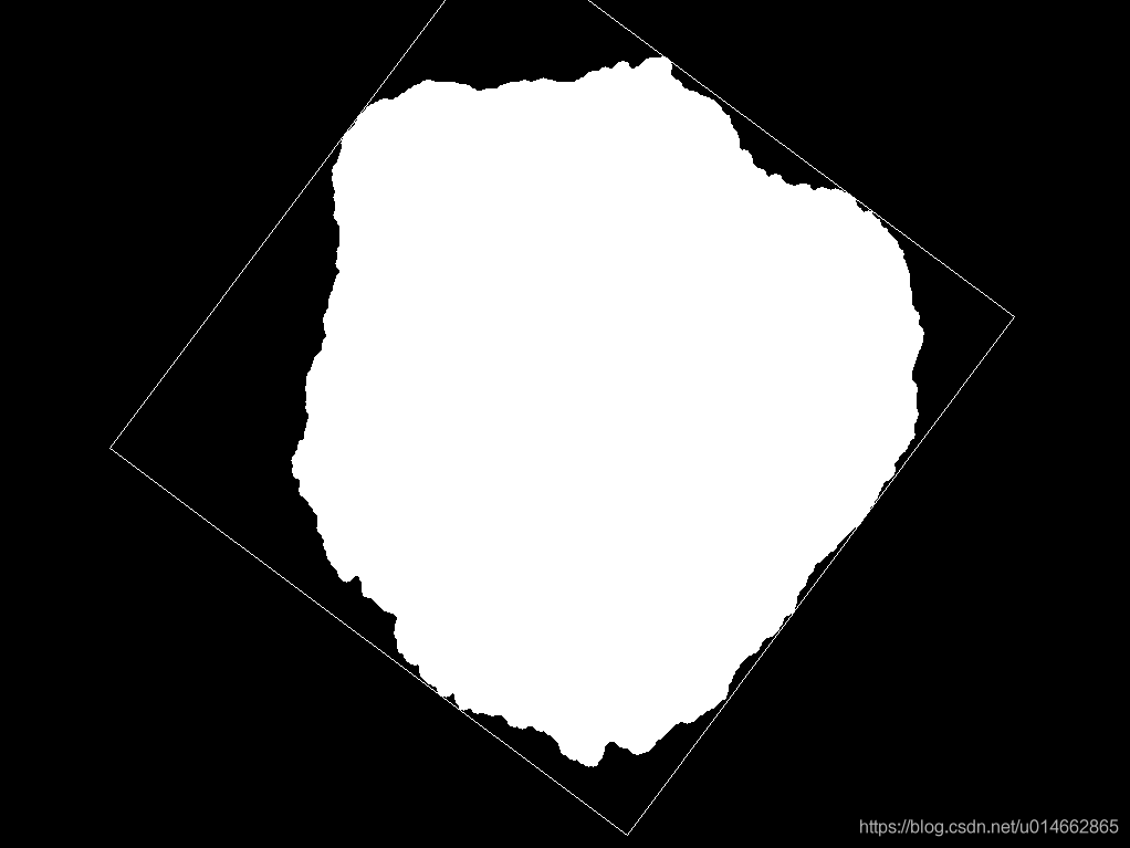 1 求出該區(qū)域的最小外接矩形,并且得到外接矩形的四個(gè)點(diǎn)的坐標(biāo)和旋轉(zhuǎn)角度。